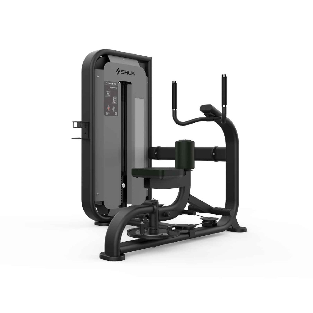 主要功能 锻炼腰腹部肌群1、阻力形式:配重块;总重80kg;最小调节重量5kg2、垫类(坐/背/胸/肘垫):PU发泡成型3、最大人体承重:150kg4、主要管材规格:龙门架平椭150502.0mm,副架平椭120502.0mm5、牵索形式:日本进口钢丝绳;¢5.6mm6、轴承:人本轴承;62057、滑轮:尼龙加纤;¢117mm;尼龙加纤;¢95mm8、皮